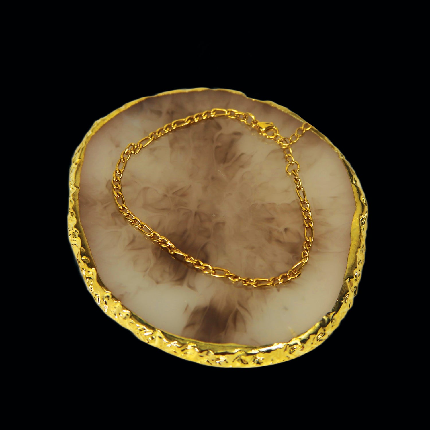 This gold plated chain bracelet is the perfect blend of elegance and simplicity. Its radiant finish and delicate design make it a versatile piece that complements any outfit. Wear it alone for a minimalist look, or layer it with other bracelets to create your own unique style.