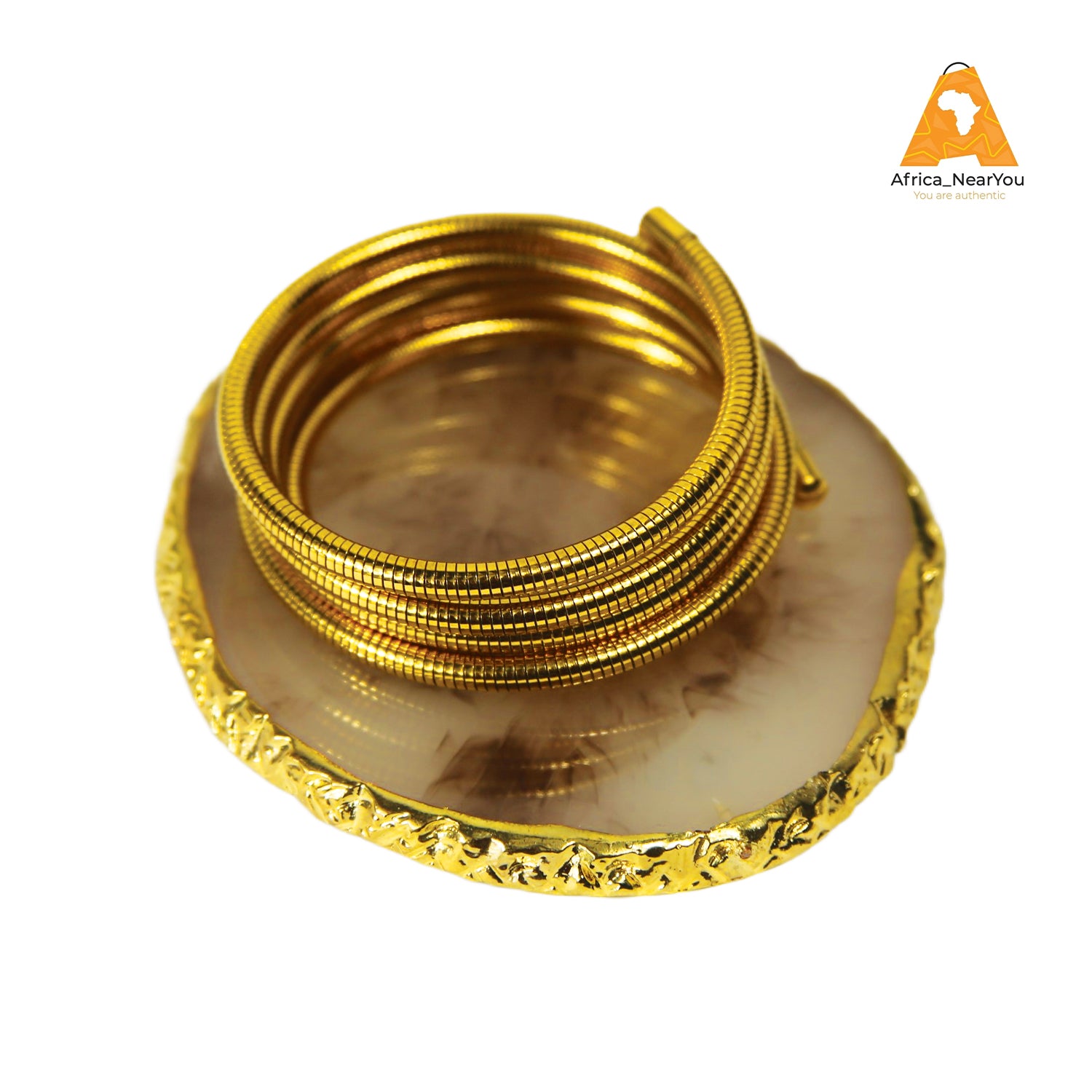 This multi-layer coil bracelet adds a modern twist to your jewelry collection. Its flexible spiral design makes it easy to wear while offering a bold, eye-catching look. The gold-plated version shines with warm elegance, while the silver-tone finish brings a sleek, contemporary touch. Perfect for stacking or wearing solo, it’s a versatile piece that transitions effortlessly from day to night.