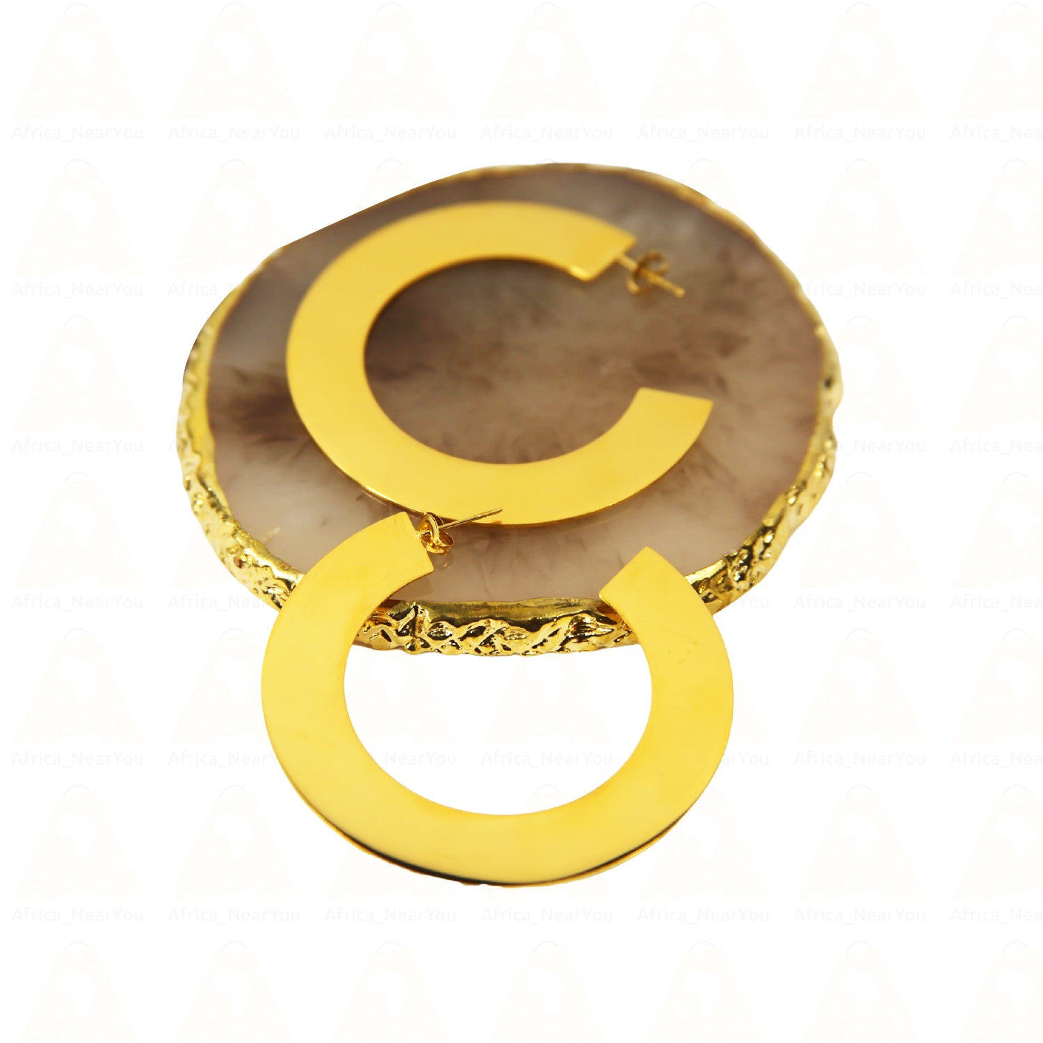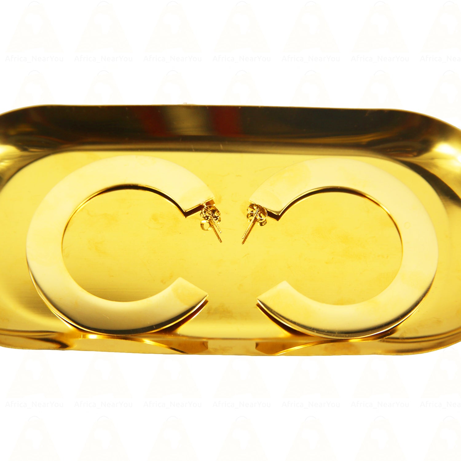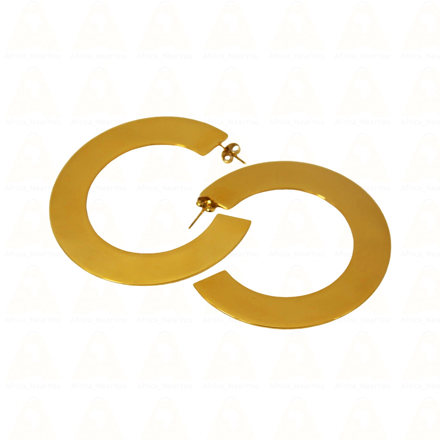 (Keywords: gold hoop earrings, bold statement jewelry, luxury accessories for women, geometric earrings, modern gold earrings)